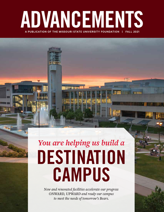 You are helping Missouri State University build a DESTINATION CAMPUS. New and renovated facilities accelerate our progress in ONWARD, UPWARD: The Campaign for Missouri State and ready our campus to meet the needs of tomorrow’s Bears. Read the 2021 Fall Advancements Magazine for